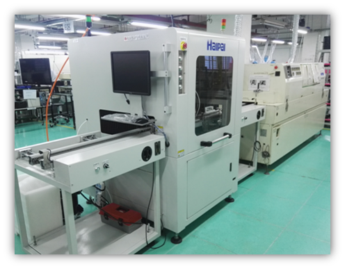 拥有四条先进的SMT全自动生产线,采用2+1形式的连接方式,即日立MS500型全自动印刷机连接,